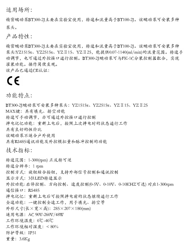 精密蠕動泵BT300-2J主要在實驗室使用,轉速和流量高于BT100-2J。該蠕動泵可安裝多種泵頭。