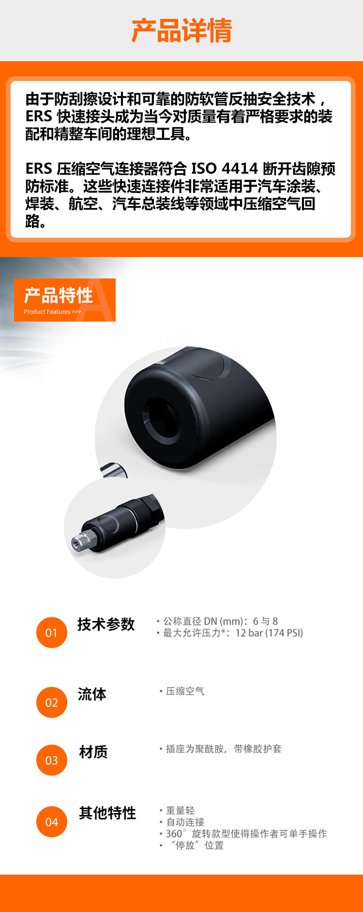 - Staubli史陶比爾 ERS 防刮擦安全壓縮空氣快速接頭