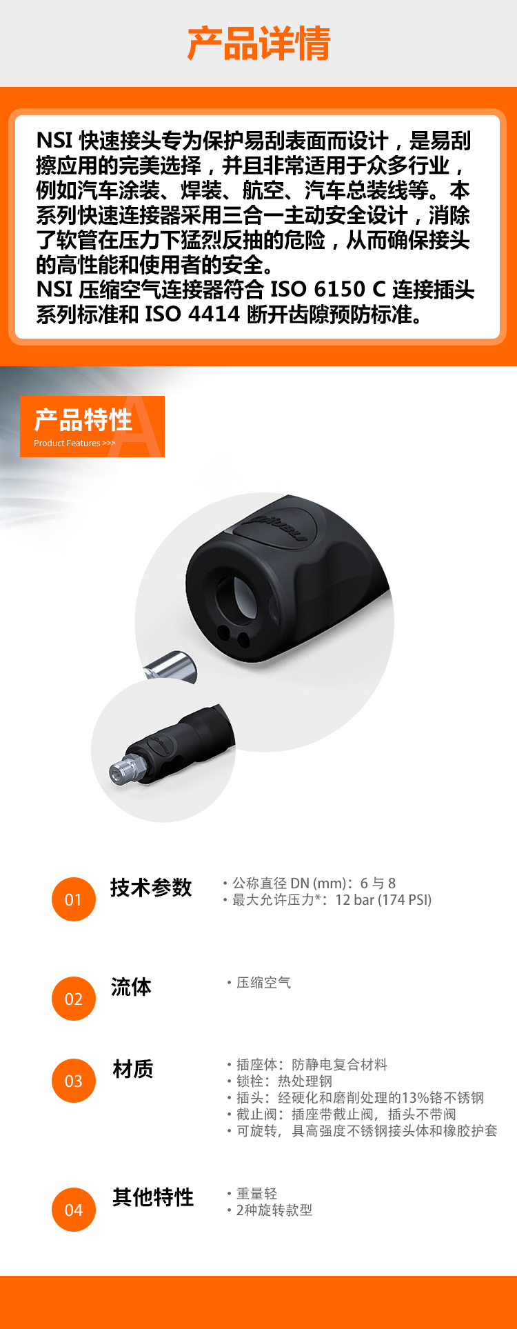 Staubli史陶比爾 NSI 主動(dòng)安全防刮擦壓縮空氣接頭