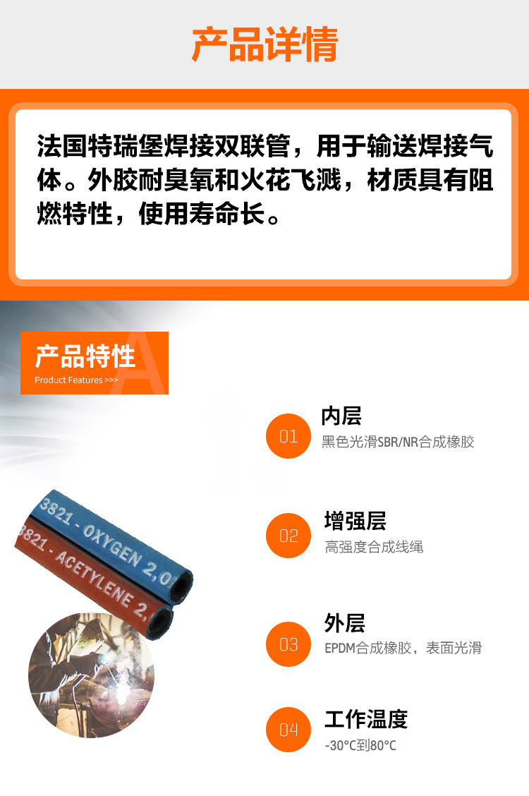 原裝法國進口特瑞堡氧氣乙炔管,焊接管,雙聯管。