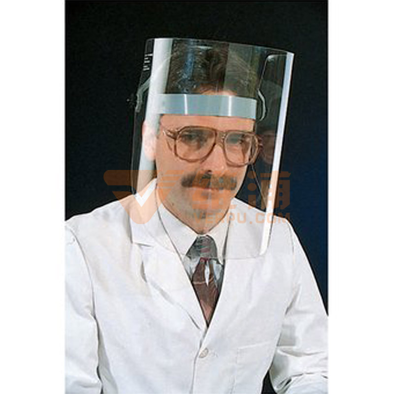 該可調(diào)節(jié)面罩擁有一個大小為 1/16 in.(1.5 mm)的聚碳酸酯透明窗口,可提供沖撞防護。經(jīng)驗證,它可以阻擋波段為 200 到 360 納米的紫外線光源的照射。可用于滅菌過程以及色譜/電泳條或膠的讀取過程。紫外線輻射可能會導致其顏色呈輕微黃褐色。裝有舒適的可調(diào)節(jié)頭飾。環(huán)繞式設(shè)計可提供對頭部正面和側(cè)面的保護。大小為 29.5 cm L × 20 cm W,該尺寸還可對頸部和頭部提供保護。用戶可舒適的將其佩戴于護目鏡之外。符合 OSHA 標準 29 CFR 部分 1910.1030,可用于防止血載病菌。符合 ANSI 標準 Z87.1。生物危害/透明