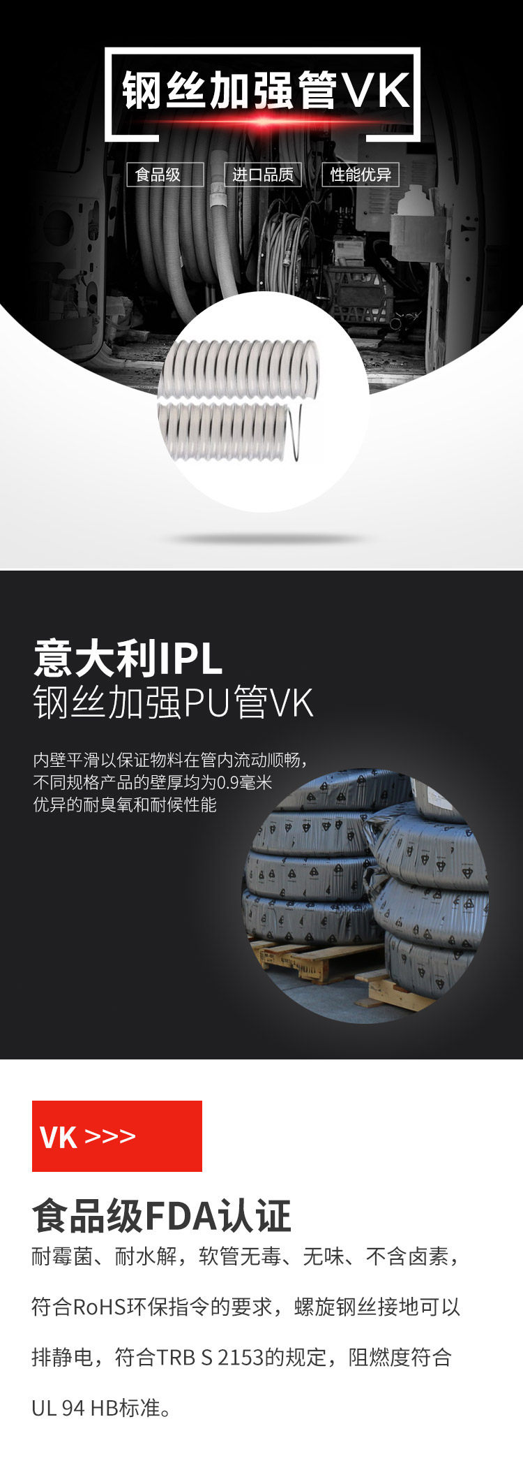 IPL食品級(jí)鋼絲PU管VK(壁厚0.9mm)