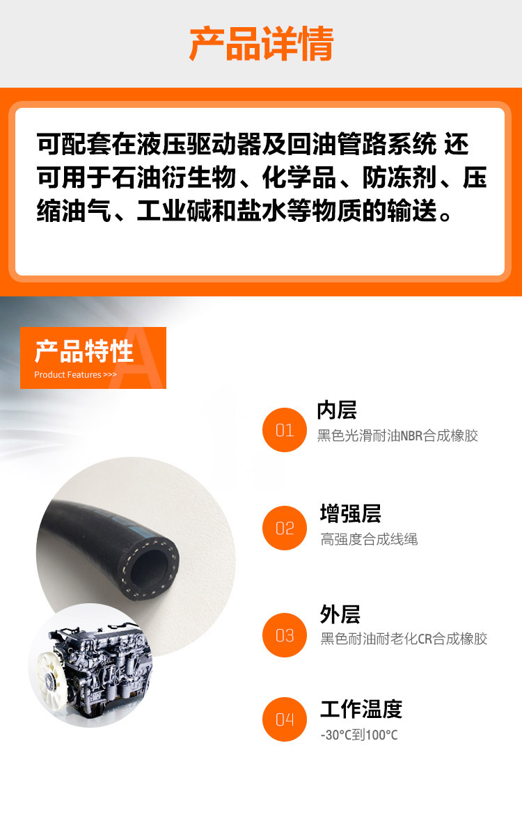 法國Trelleborg(特瑞堡)進口輸油軟管POLYOIL,可配套在液壓驅動器及回油管路系統 還可用于石油衍生物、化學品、防凍劑、壓縮油氣、工業堿和鹽水等物質的輸送。